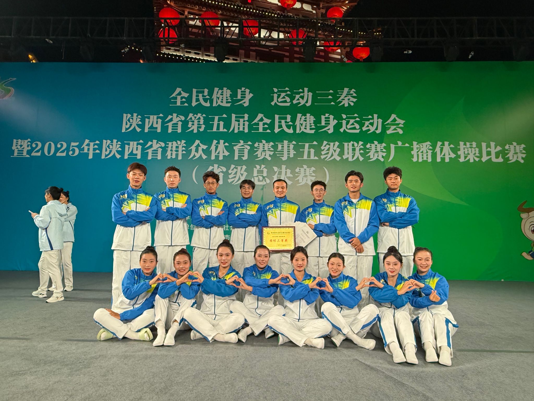 10月13日晚上,由陕西省人民政府主办的陕西省第五届全民健身运动会暨2025年陕西省群众体育赛事五级联赛广播比赛(省级总决赛)在商洛市望江楼广场圆满落幕,我校师生组成的安康市代表队斩获广播体操比赛团体三等奖。