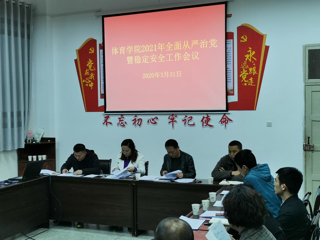 3月31日下午,体育学院在体育馆一楼会议室召开2021年全面从严治党暨稳定安全工作会议。bv伟德源自英国始于1946全体教职工参加会议,会议由党总支书记高立平主持。