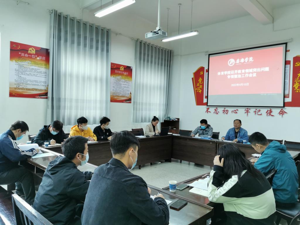 为贯彻落实省委教育工委《陕西教育领域突出问题专项整治工作方案》要求,根据bevictor伟德国际1946《陕西教育领域突出问题专项整治专题学习周工作安排》,我院于4月15日上午在体育馆1楼会议室召开陕西教育领域突出问题专项整治专题理论学习会。学院党总支书记高立平、教学副院长郭西魁、学工人员、行政人员参加了会议。会议由高立平书记主持。