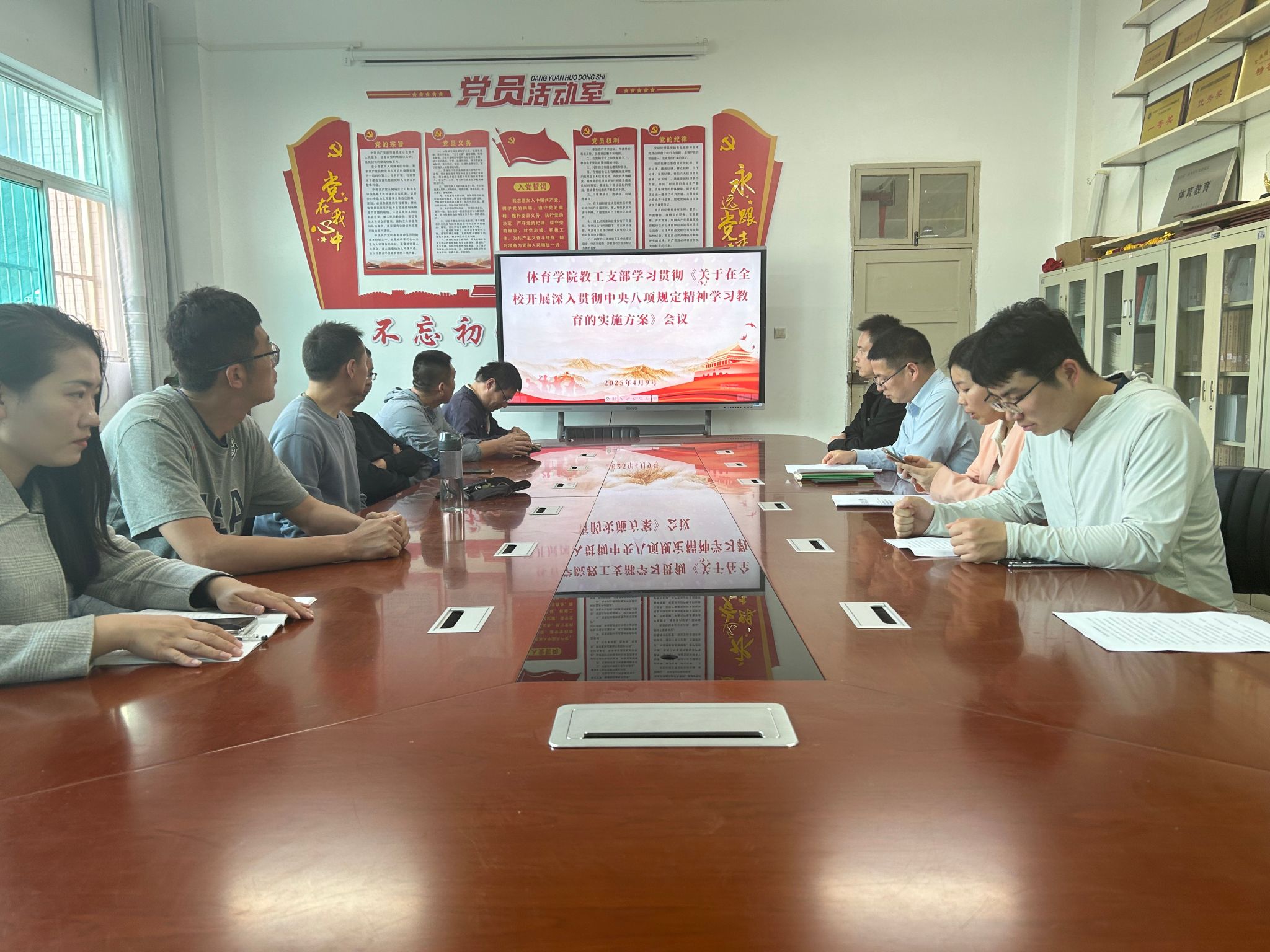 为贯彻落实党的二十届三中全会部署,巩固拓展学习贯彻习近平新时代中国特色社会主义思想主题教育成果,巩固深化党纪学习教育成果,锲而不舍落实中央八项规定精神,推进作风建设常态化长效化。2025年4月9日,bv伟德源自英国始于1946教工支部召开《关于在全校开展深入贯彻中央八项规定精神学习教育的实施方案》专题会议。会议由教工支部书记刘芹主持,支部委员及成员等参会,bv伟德源自英国始于1946总书记韩晔列席指导。