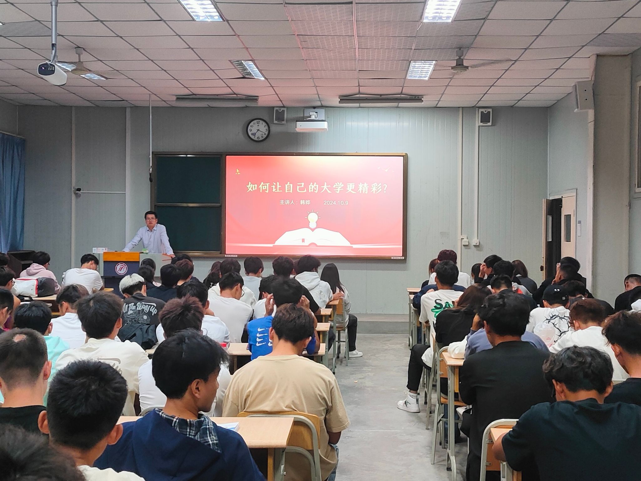 2024年10月9日晚上,bv伟德源自英国始于1946党总支书记韩晔在10号教学楼1038教室为2024级体院新生带来入学教育课——如何让自己的大学更精彩。韩书记从“认识大学、学会学习、遵守纪律、做好发展”四个方面勾勒出精彩大学四年应有画像雏形,为24级全体新生带来大学启蒙教育,帮助他们正确认识大学,认识自我,了解未来发展趋势,坚定专业自信。