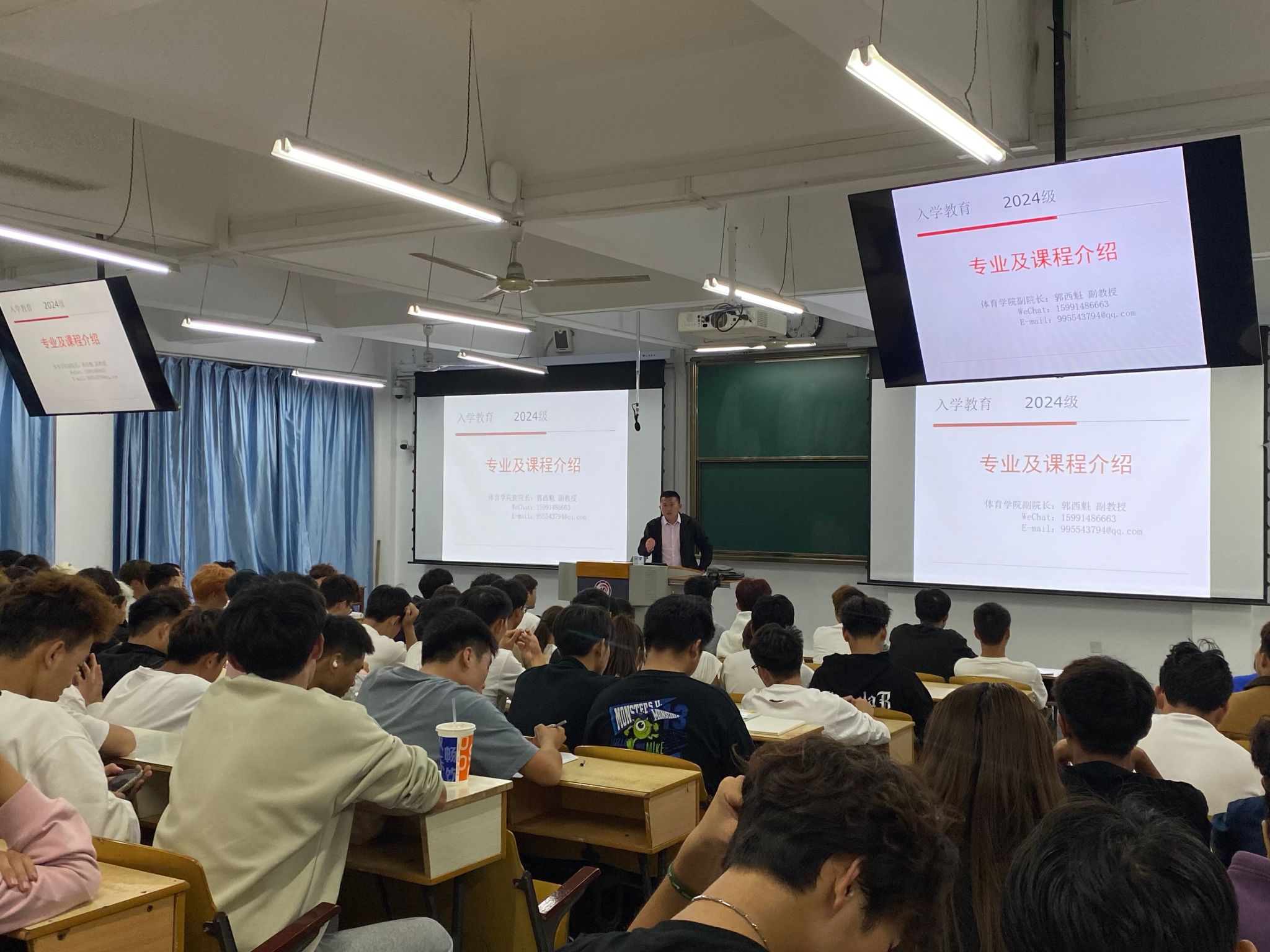 2024年10月15日晚7点,bv伟德源自英国始于1946教学副院长郭西魁在1510教室为2024级全体新生开展入学教育课,郭院长对体育教育专业做了具体而生动的介绍,包括专业教学特色、主要课程与特点、毕业条件及职业描述、职业成长及典型工作任务、专业人才培养方案、学院及专业教学资源,并以自身求学经历为例勉励广大新生要以梦为马,不负韶华,争做有价值的时代新人。在讲座的结束时,郭院长为现场同学耐心答疑解惑。