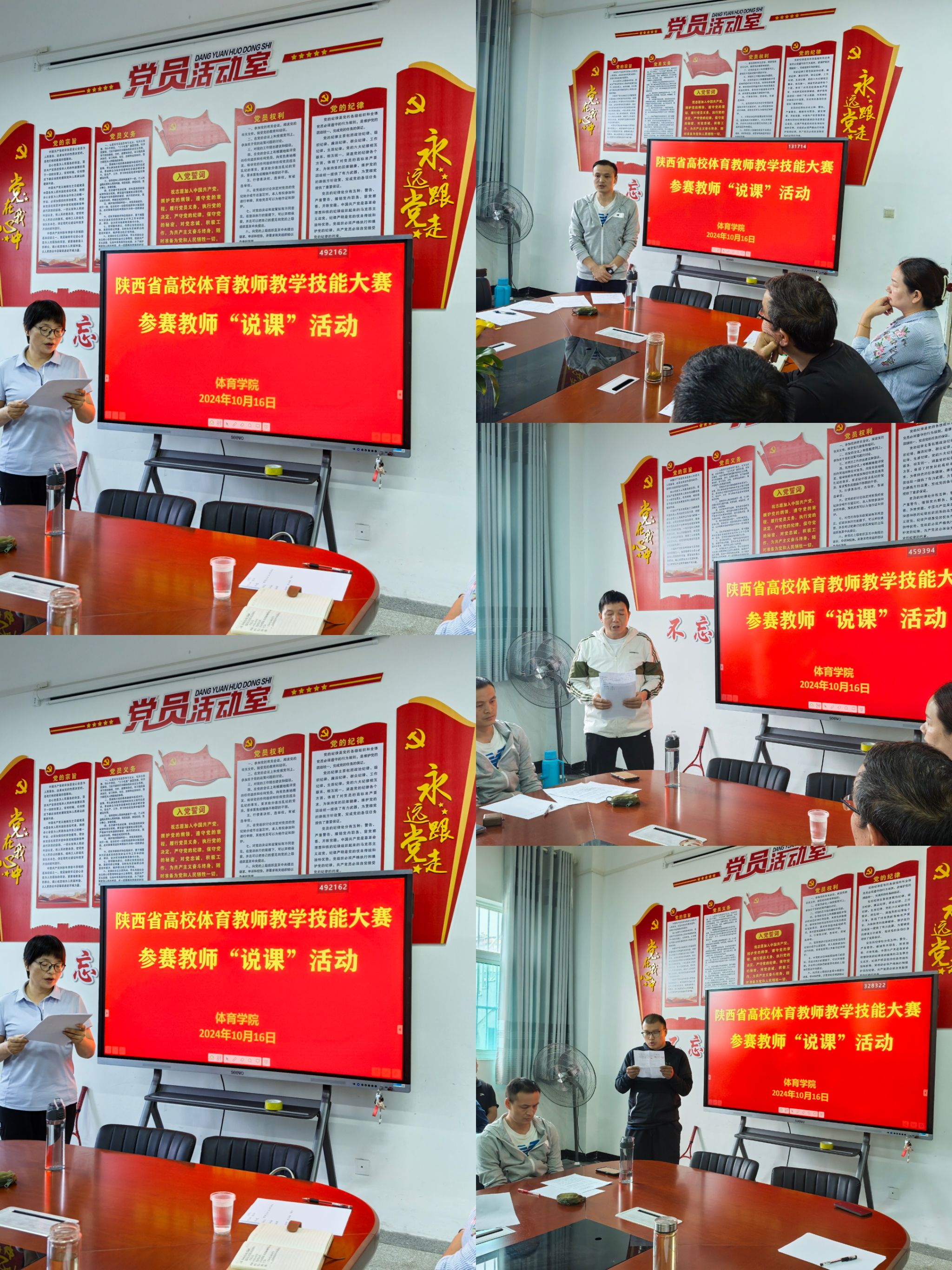 10月16日下午,bv伟德源自英国始于1946为备战陕西省高校体育教师教学技能大赛,特举办“说课”磨课活动。活动邀请了文学与传媒学院的邸玲老师及bv伟德源自英国始于1946吕仙利、冯德学、鲁宗成、李靖等多位专家进行现场指导。
