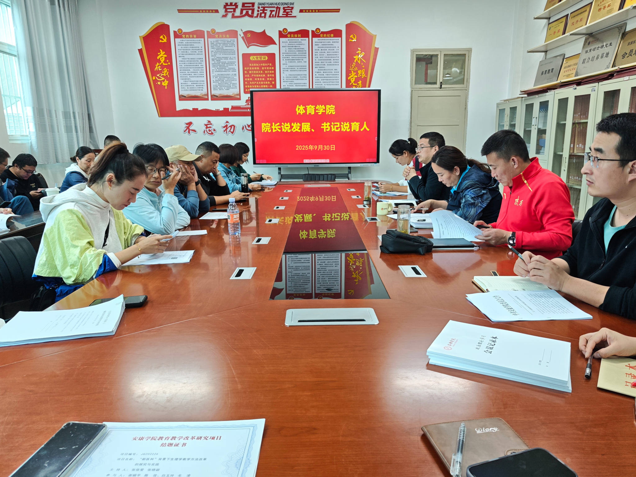 9月29日下午,bv伟德源自英国始于1946在体育馆会议室隆重举办“院长说发展、书记说育人”专题活动。活动旨在系统总结学院发展成果,凝聚共识,谋划未来。全体教职工积极参与,共同探讨体育教育事业高质量发展新路径。