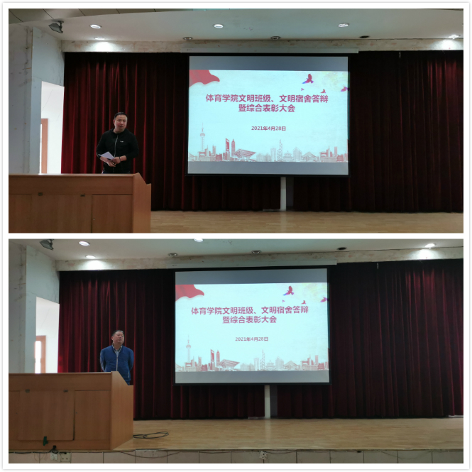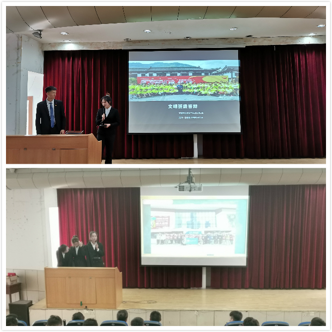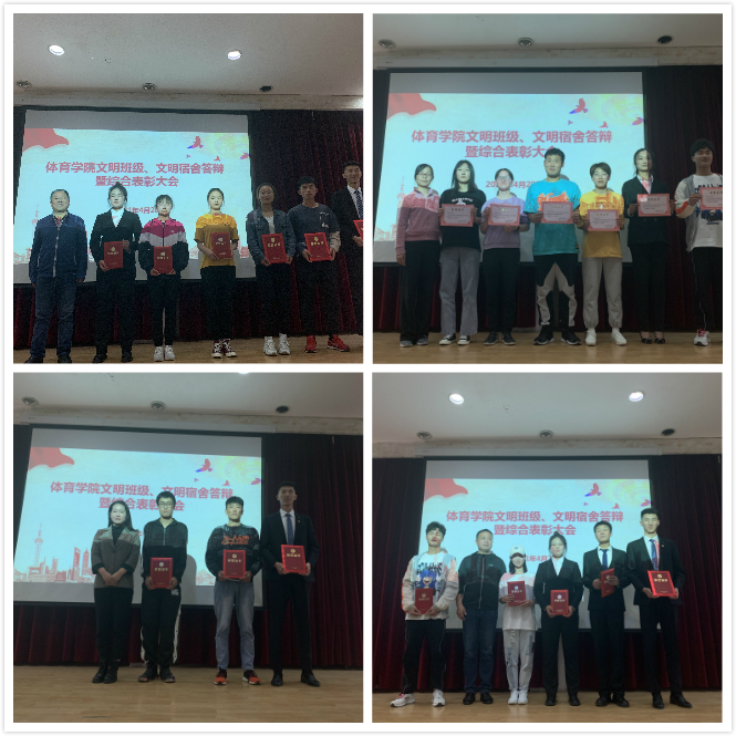 在文明班级、文明宿舍答辩环节,各宿舍代表围绕宿舍舍风建设、文化建设、学风建设、内务卫生、安全防范、遵章守纪等方面逐一进行了汇报;参与文明班级答辩的同学通过PPT和视频的形式向现场老师和同学们展示了各自班级概况、学习成果、学风建设、班级活动等方面内容,展示了当代大学生良好的精神风貌。