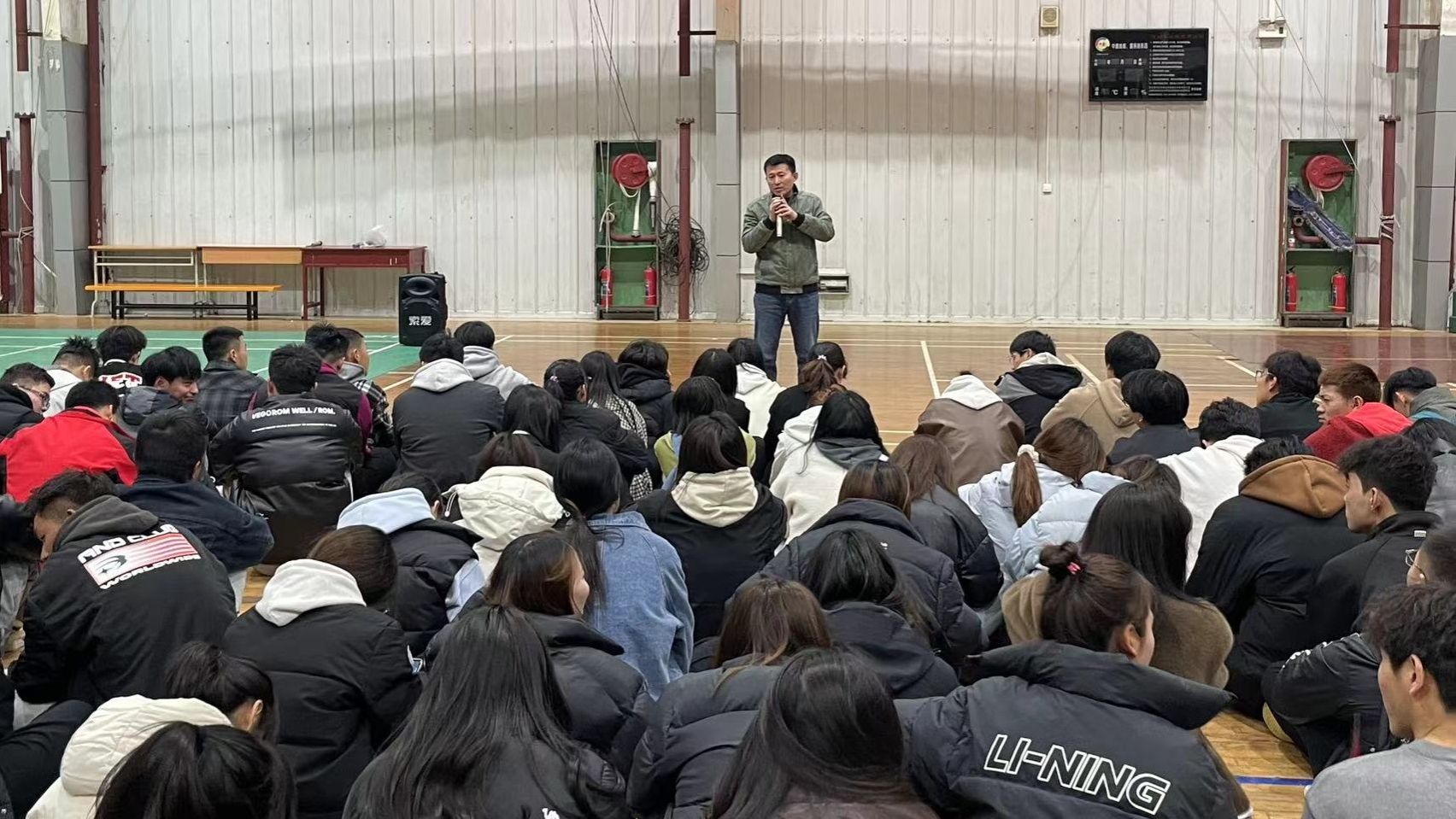 310日晚,我院在体育馆二楼开展安全主题教育。学院党总支副书记郭西魁、副院长李靖、学工办主任王立、团总支书记刘姚成,以及我院21级、22级、23级全体学生参加了学习。