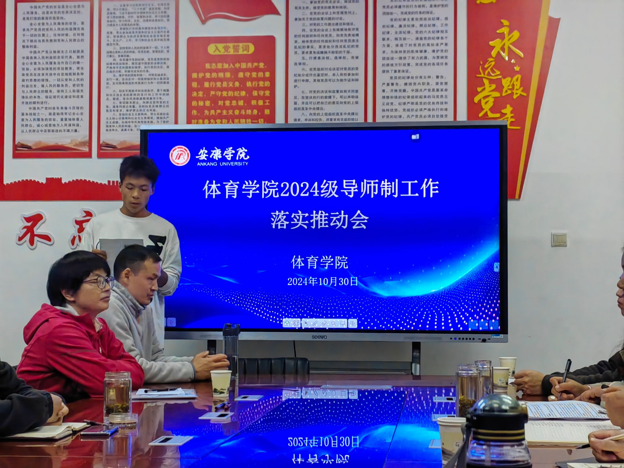 党总支书记韩晔对导师制的落实提出四点要求,一是思想上要进一步重视,将学业导师制工作作为人才培养质量的一个重要方面;二是管理上要进一步加强,深化过程管理,严格落实学生导师制考核工作三是考核上要进一步严谨,必须充分认识学业导师制考核工作的严肃性,正视存在问题,以考核促建设,确保导师制工作质量的持续提升;四是成效上要进一步凸显,要及时总结工作经验和优秀案例,树立模范典型,强调榜样作用,指导激励效果进一步提升。